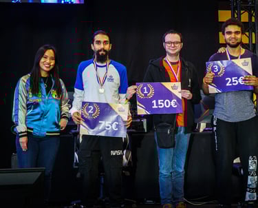 Un grand bravo aux adhérents et aux bénévoles qui ont apportés un mur à l'édifice qu'est l'association. Un grand merci à vous qui lisez ces lignes, à vous qui êtes venus nous voir le 18 & le 19 novembre.... Et surtout à nos partenaires sans qui ça n'aurait pas été possible : A l'Art Hache via Art N'A Esport, Reims Events, Devil Informatique et TMS Transport